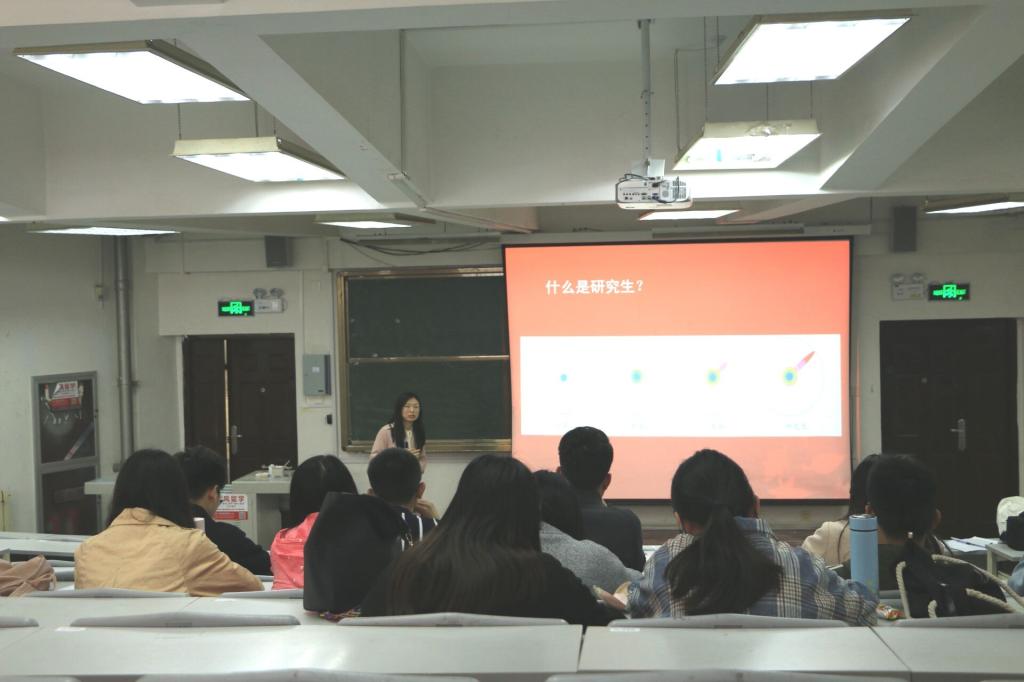 在本次专题讲座中,徐希老师以别具一格的自我介绍开场,随后从研究生生活中的多个角度进行讲解。通过自身硕、博六年的科研经历和感悟,告诫同学首先应当在研究生阶段树立明确的目标,并希望同学能够趁着青春年华,为自己的目标努力奋斗。其次,鼓励同学多进行跨学科的交流与沟通,多听取不同于本身专业背景的学术报告等,在不同学科背景下的交流更容易激起思想的火花。最后,导师作为研究生生涯中不可或缺的角色,亦师亦友,同学在科研过程中遇到瓶颈,应多与导师及时沟通。