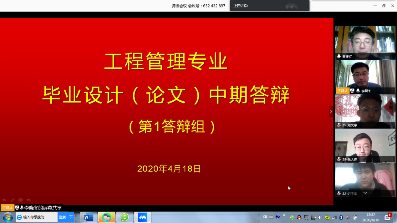 新冠病毒疫情期间“停课不停学,云端促毕设”。4月18日,管理工程学院工程管理教研室举行了毕业设计(论文)中期在线答辩。