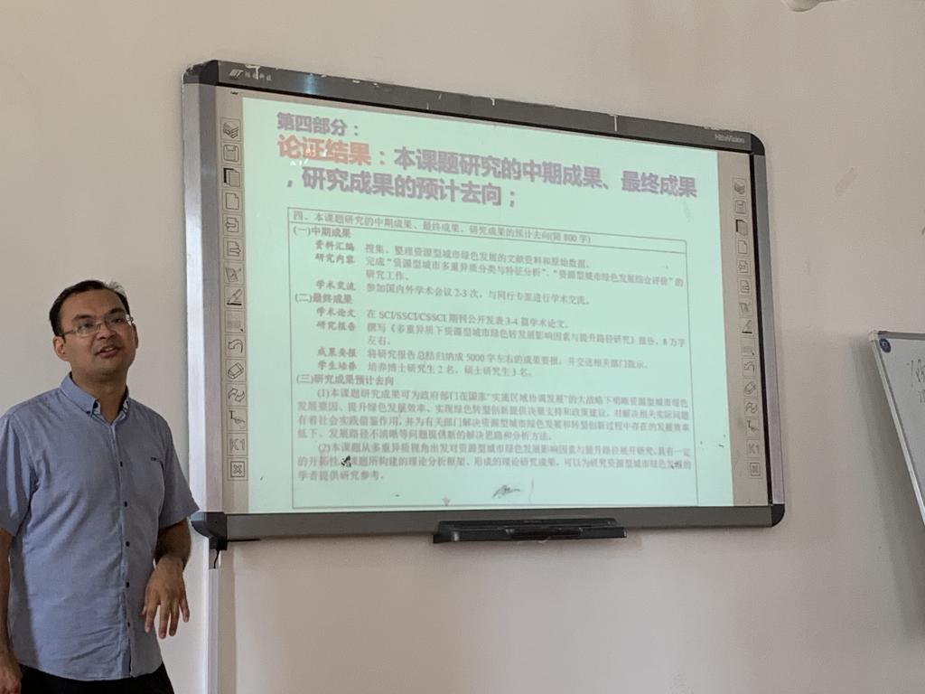 荀志远代表学院对周红燕、汪艳涛的到来表示热烈欢迎。周红燕从科研发展规划视角,以论文——项目——评奖为主线,对我校文科科研政策进行了生动而又详细的解读,并从学院社科研究发展规划、教师个人科研发展等方面提出了指导意见和建议。她强调科研过程中持续发表高水平论文的必要性,建议老师们在已有成果积累的基础上,认真研究申报不同层次的科研项目及奖励,不断提高科研的质量和层次,多参加高质量学术会议和科研培训会,积极参与分享与交流,探索建立科研团队,以此实现科研能力的提升;汪艳涛以交叉学科申报项目的角度,从申请前的准备、选题与定题的方法以及申报书的撰写三个方面分享了自己的成功经验与心得感悟,鼓励大家不惧怕失败,从申报学校、青岛市人文社科项目入手,循序渐进,“不积硅步,无以至千里”;我院2020年成功获批教育部人文社科青年基金项目的教师薛雅伟博士从选题入手,详细介绍了教育部人文社科类项目申报的流程、前期准备及撰写申请书注意事项,结合自己的心路历程,提出了切实可行的申报建议。董德坤结合学校要求,对今年的教育部人文社科研究项目申报进行了具体部署,并鼓励大家积极申报。