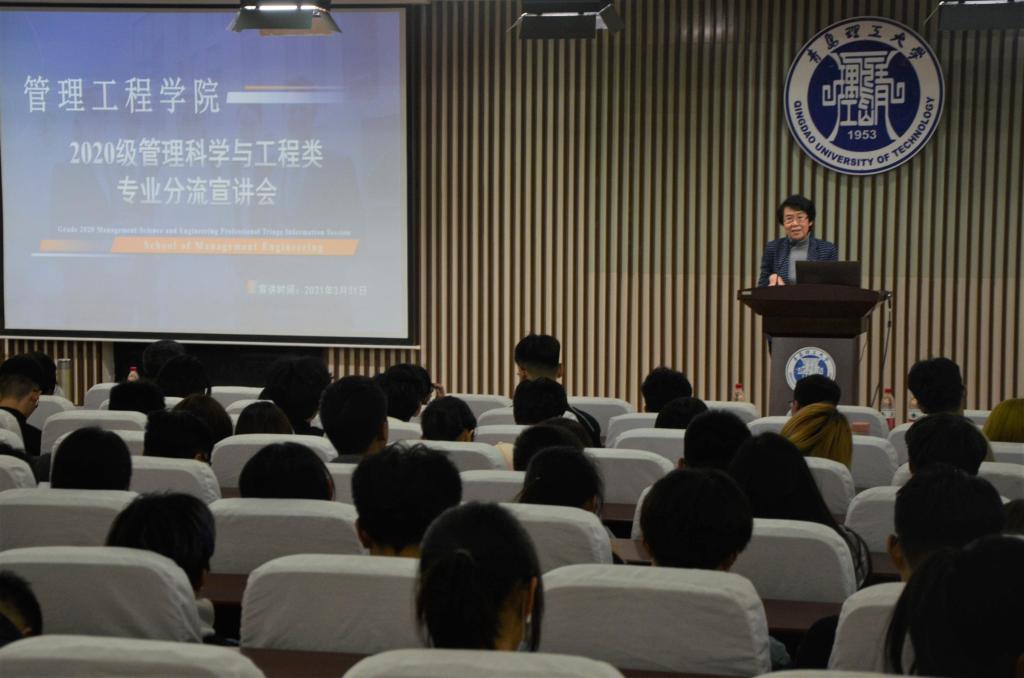 为提高人才培养质量,管理工程学院积极推进“按类招生、分流培养”的人才培养改革模式,实行近两年来取得了良好成效。为做好大类招生模式下学生专业分流工作,加深同学们对分流专业的认识、减少专业选择的盲目性,3月31日下午,管理工程学院在嘉陵江路校区1号教学楼一楼东报告厅召开了2020级管理科学与工程类专业分流宣讲会。学院党总支书记梁虹、教学副院长申建红、学院各专业教研室负责人、辅导员张心怡及2020级管理科学与工程类全体学生参加会议,会议由学院党总支副书记于利俊主持。