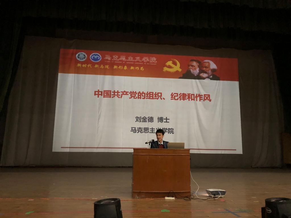 在庄严的国歌声中,典礼正式拉开序幕。于利俊宣读了《积极分子培训班管理办法》。随后,梁虹进行动员讲话,她强调各位入党积极分子要加强对党的认识和理解,坚定跟党走的理想信念,真正牢固树立为实现中华民族伟大复兴中国梦而奋斗的远大理想。并从认真学习,涵养党性;筑牢信念,对党忠诚;担当作为,知行合一三方面对学员提出希望和要求。开班典礼结束后,马克思主义学院刘金德博士在学员们的热切期盼中开始了本期入党积极分子培训班第一讲,刘老师运用丰富的教学和实践经验,采取理论与实践相结合的方法向同学们讲述了中国共产党的组织、纪律与作风,各位学员认真记录,现场气氛融洽。
