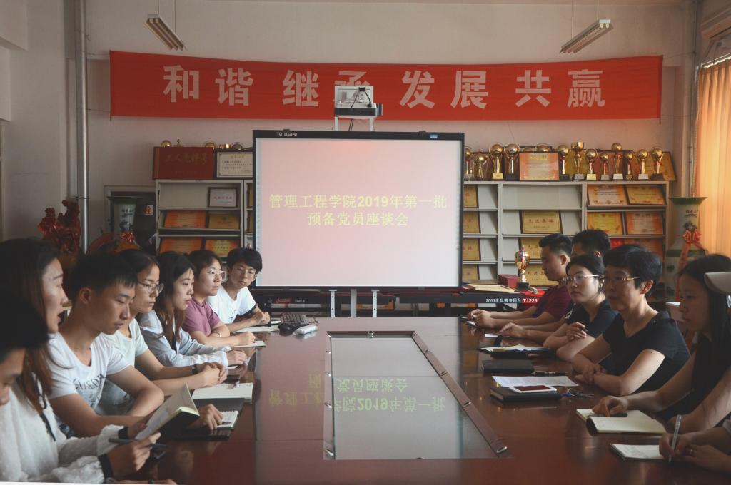 7月4日上午,管理工程学院党总支于2教410举办2019年第一批预备党员座谈会。党总支书记梁虹,29名新发展预备党员参加。会议由学院组织员仝莉莉主持。