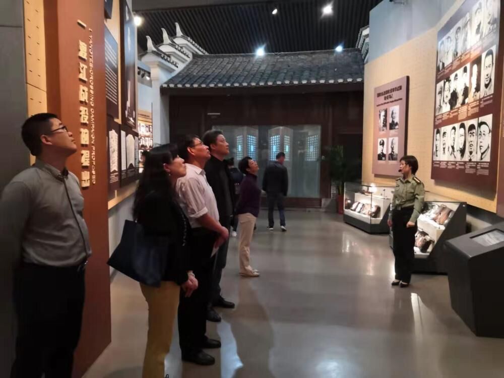 今年是新中国成立70周年,也是渡江战役胜利70周年。荀志远一行瞻仰了邓小平、刘伯承、陈毅、粟裕、谭震林五位渡江战役总前委的塑像,缅怀革命先烈,重温革命精神。随后走进合肥渡江战役纪念馆,在解说员的引导讲解下,依次参观了战前形势、战役准备、突破江防、战役胜利、人民支前和英烈业绩等展厅和烈士名录馆,在瞻仰老一辈革命家史料图片和战时物件,缅怀革命先烈的奋斗历程和赫赫功勋的同时,学院教师深刻感受到革命先烈艰苦奋斗、不屈不挠的优良作风,不畏艰难、坚持到底的革命信念和忘我奋斗、不怕牺牲的斗争精神。
