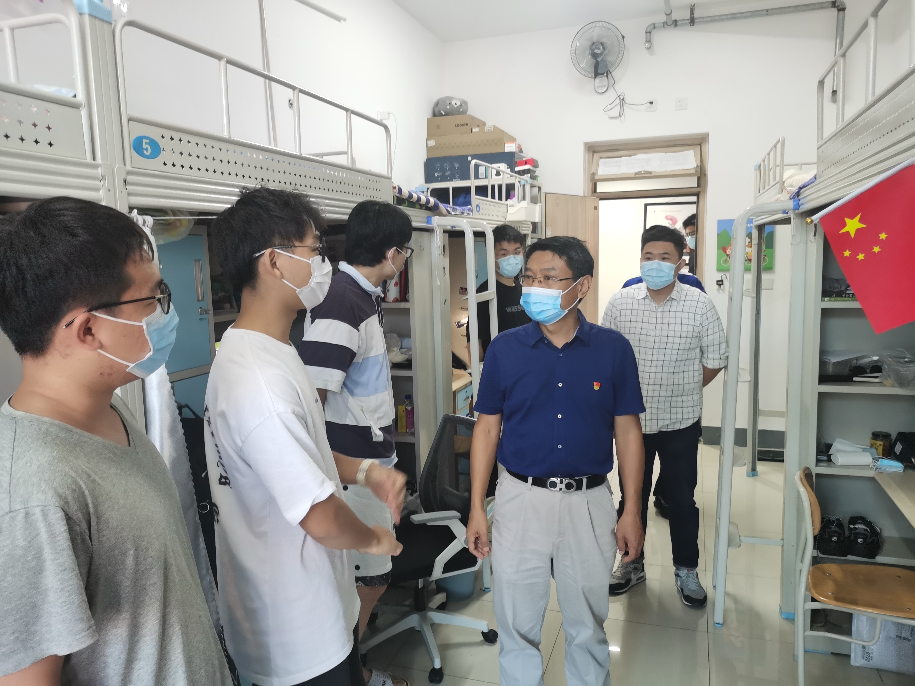 李洪民一行深入荷园社区、慧园社区学生公寓,了解同学们的学习生活实际,与同学们亲切交流,他表示,“党员宿舍”不仅是荣誉,更是激励。学生党员要二十四小时亮出自己的身份,从学习到工作,从宿舍到班级,从班级到年级,以点带面,点面结合,发挥模范带头作用,推进学院优良院风学风社风建设,真正实现“一名党员,一面旗帜”的目标。王中帅与备战考研的同学们深入沟通交流,关心关爱学生的考研心理状态,鼓励同学们保持乐观的心态积极备考。
