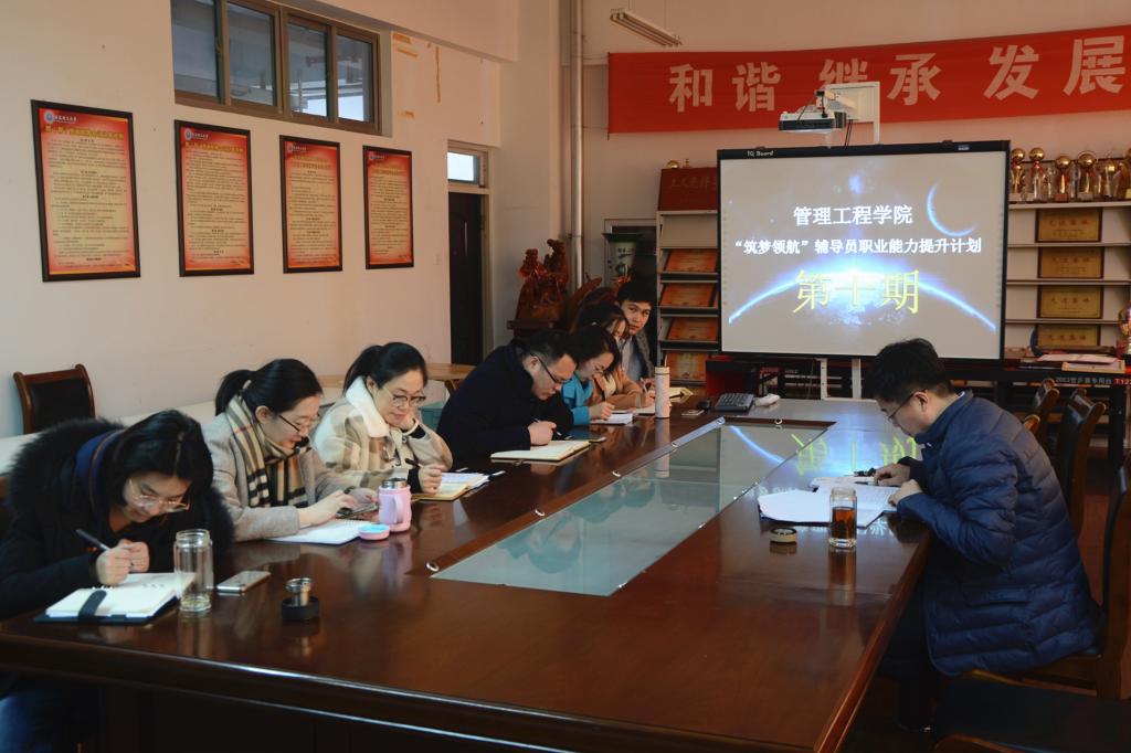 为增加辅导员对最新文件的学习,实现学院与学校的同步前进,4月8日下午,管理工程学院在二号教学楼410会议室召开第十期“筑梦领航”辅导员职业能力提升计划。学院党总支副书记于利俊及学院全体辅导员参加此次会议,会议由于利俊主持。