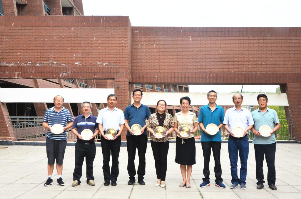 荀志远代表学院向10位老师颁授了“言传身教 孜孜不倦---从教三十年”纪念牌,并集体合影留念。