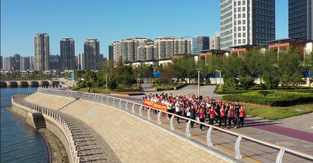 为庆祝中华人民共和国成立70周年,大力弘扬以爱国主义为核心的伟大民族精神,激励全院师生将爱国精神转化为实际行动,立足本职岗位作贡献,为学校高质量发展和实现中华民族伟大复兴的中国梦而不懈奋斗,9月18日下午,管理工程学院举办了“喜迎新中国70华诞”师生唐岛湾健步走活动。活动由唐岛湾公园中心广场出发,沿海滨木栈道向东步行至南港小镇广场处折返,回到中心广场,全长5公里。管理工程学院教师、学生代表60余人参加了活动。