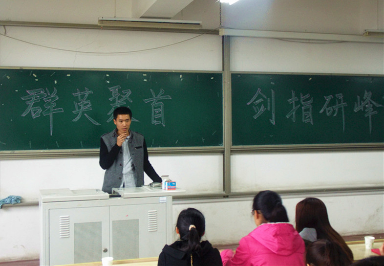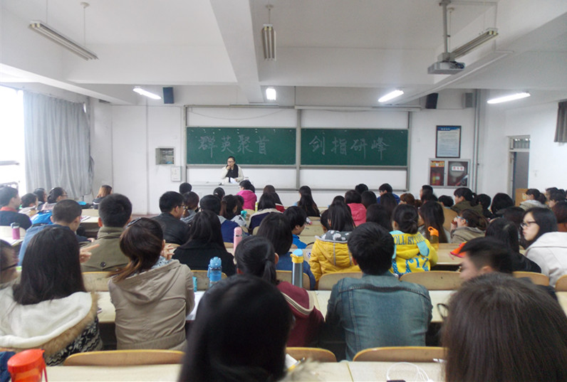 为使同学们获得全面的考研信息,更加合理科学的备战2015年考研。4月17日下午4点,我院在二教405室举办“群英聚首,剑指研峰”考研经验交流会。本次交流会请到了10级的五位考研达人,其中物流专业的苑俊丽同学以412分的优异成绩成功考取华南理工大学,张英华成功考取哈尔滨工业大学、左娇娇考取东南大学。管理学院11级辅导员老师邹佳欣主持本次讲座。