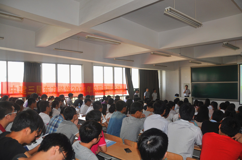 9月16日上午9点,中建三局东方装饰设计工程有限公司上海总部人力资源负责人、青岛分公司副总经理、办公室主任、人力资源部门负责人等一行五人走进管理学院,举行2014年校园招聘宣讲会。