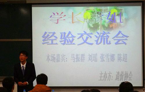 为增加新生对专业知识和校园生活的认识,解答12级新生在学习、生活中的问题,11月8日晚7点,管理学院造价协会在2教409举办了“学长学姐经验交流会”活动。本次活动由管理学院09、10级学长学姐为12级新生解疑答惑。