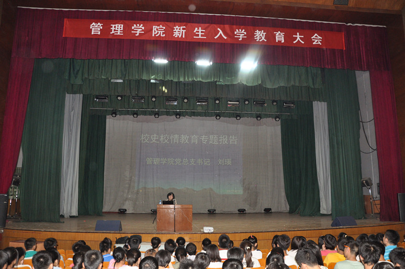 为了帮助全院新生更好地了解学校的历史革延及校规校纪等方面知识,9月9日下午2点,管理学院在科学会堂召开2012级新生入学教育大会。党总支书记刘瑛,副院长姜东民,党总支副书记申维东及学院各年级辅导员老师出席大会。会议由2012级新生辅导员于淼老师主持。
