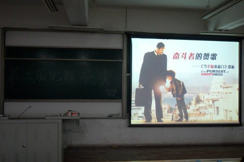 首先,主持人用PPT的形式向大家展示了《当幸福来敲门》的简介。此部影片是由克思斯·加德纳根据自己的真实经历编写,讲的是奔跑在追逐理想的道路上,主人公不断地努力,最终成功来敲门的故事。接着,根据剧情为同学们设立了相关的问题,场下的观众积极踊跃地抢答,并获得精美的小礼品。活动最后,同学们分享了自己的观后感,同时表达了自己对追求理想的决心。