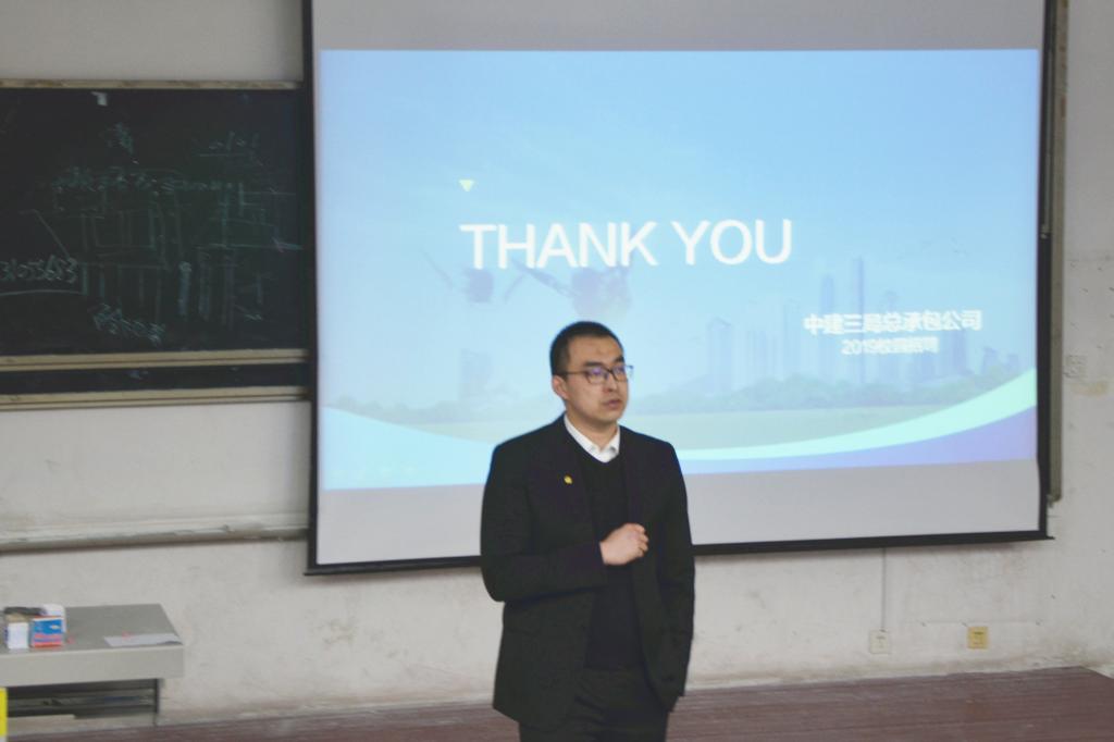 3月29日下午,管理工程学院于二教阶401举办中建三局招聘宣讲会。中建三局山东分公司青岛商务中心经理周昊、黄潞出席此次会议,周昊担任本次宣讲会主讲人。