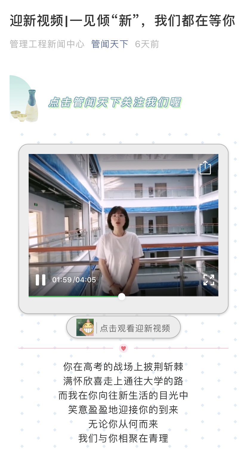 为营造浓厚的迎新氛围,让新生及家长更好了解学院,学院着重加强迎新宣传工作,从线下和线上两个方面同步进行,提前进行策划设计主题、方案等。线下方面,今年学院刚搬入管院新大楼,充分利用现有条件,学院共制作10块大型展板,包括学院介绍、学生工作介绍、专业介绍、班主任风采展、考研风采录等,展示学院办学特色、教师团队和学科发展等,放置在迎新现场,吸引了众多新生驻足观看,让新生第一时间了解班主任老师和学院的情况,新生纷纷表示对学院教学科研,师资队伍充满信心。线上方面,针对今年家长不能进校实际情况,学院“管闻天下”微信公众号开门开辟迎新专版,共推出20期,涉及学院发展历史、教学科研、学生工作、报到流程、入学适应、校园环境等方面,在新生报到前,让新生关注“管闻天下”微信公众号,家长和学生每天都可以看到推送的文章,认真学习,全面了解,及早准备,明确方向,为今后学习生活奠定坚实基础。同时建立了QQ群、易班新生专区等,班主任、班助全部加入到群里面,随时解答学生提出的各类问题,让学生明明白白、开开心心来校报到学习。
