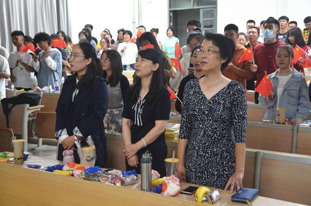 随后,联欢活动正式开始。乐起舞动,开场舞时而柔美,时而灵动,紧接而至的热舞串烧瞬间点燃全场,将晚会气氛推向高潮。学生们用歌声向祖国传递着内心深深的崇敬与爱意——《我和我的祖国》庄严肃穆,唱出了大家对祖国深情;《平凡之路》浑厚悠扬,沙哑的男声轻轻唱起梦想,歌声沉稳有力,饱含了对未来的美好憧憬;随后,学生们自发组织,邀请校、院领导一同合唱《歌唱祖国》,伴随着手中摇动的五星红旗,共同庆祝祖国71岁华诞。接下来,学院领导同新生们一起观看晚会节目,积极与新生进行友好互动,现场气氛热烈活跃,处处洋溢着青春的气息。