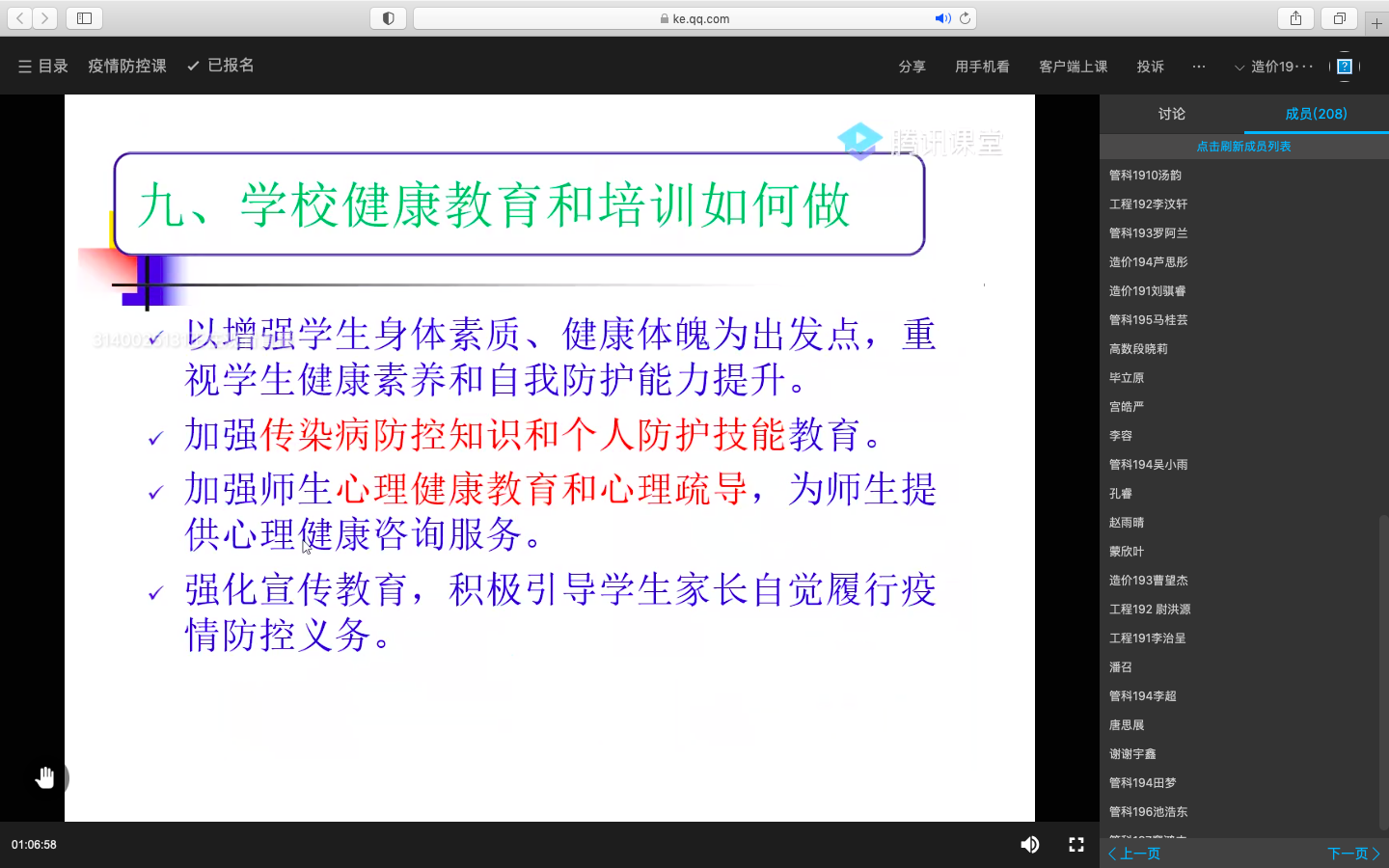 此次疫情防控培训深化了同学们对于疫情防控知识的理解,深入贯彻了学校对于校园疫情常态化防控的要求,进一步提升学生防控责任意识,为学院有序开展防疫防控工作奠定了坚实基础。(撰稿:王云霞;审核:于利俊)