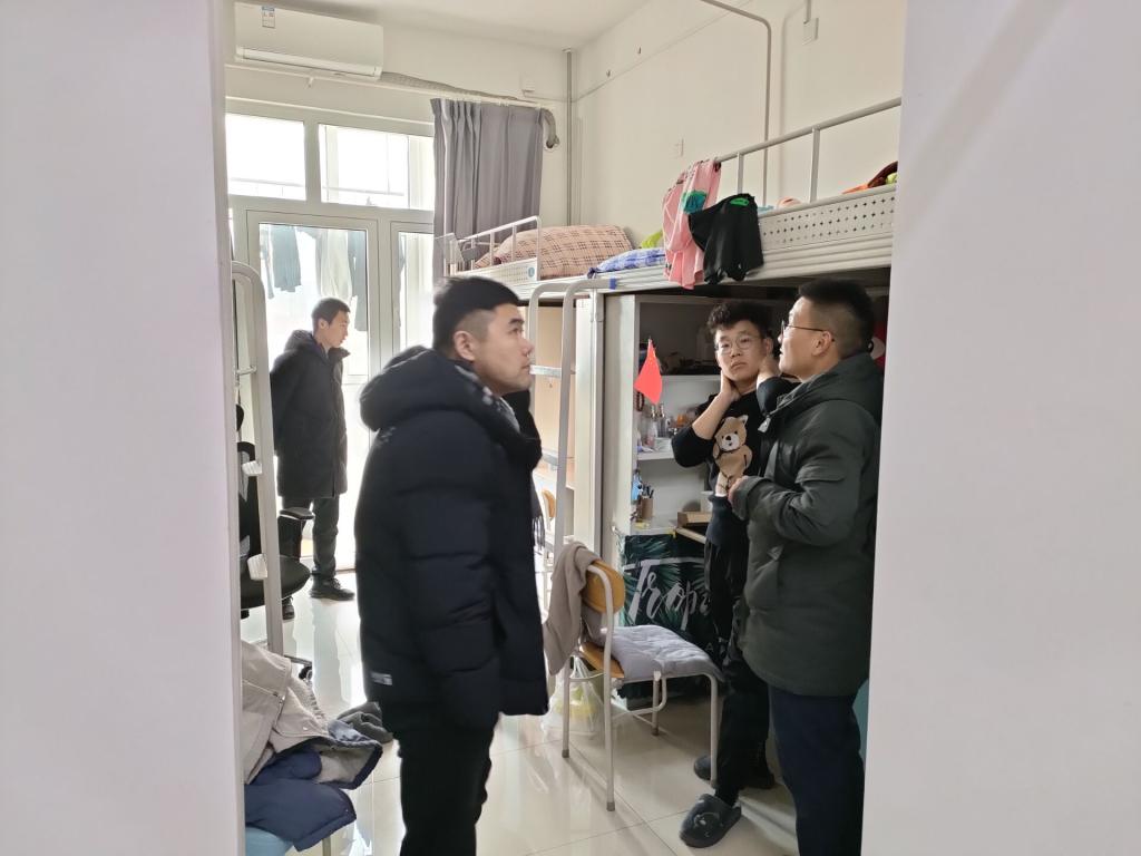 为进一步加强学生宿舍管理,做好假期疫情防控工作,筑牢学生公寓安全防线,确保学生安全离校。1月11日,管理工程学院党委副书记王中帅以及全体辅导员深入学生公寓,就安全管理、服务保障、假期安全教育等工作与同学们进行深入交流。
