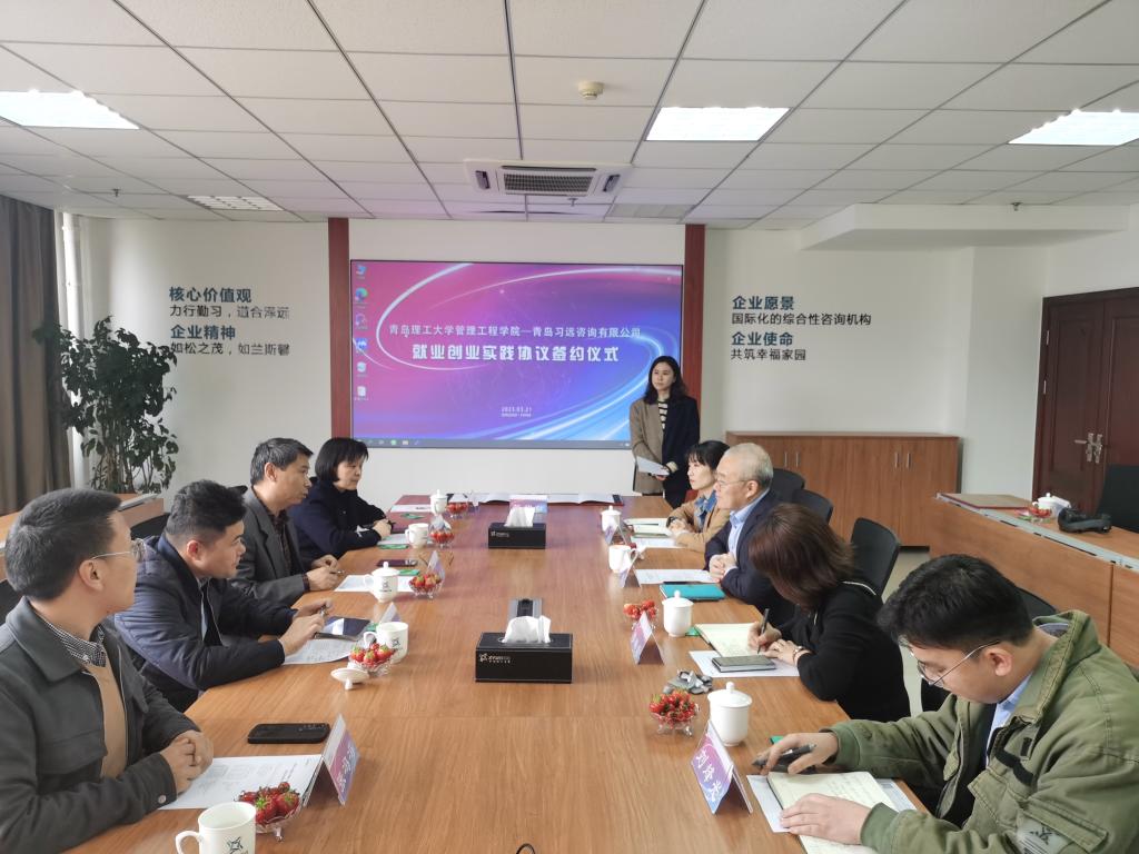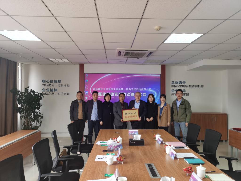 为更好地凝聚校友力量,增进校友与母校的情感,迎接学校70周年校庆, 3月21日,管理工程学院走访青岛习远咨询有限公司并举行就业创业实践基地签约仪式。学院党委书记李洪民,党委副书记、副院长王中帅,工程造价系主任张贵华,毕业生辅导员李佳妮、张冯冯参加。并与习远咨询公司董事长张晓,学院04级国工专业校友、副总经理李璐霞等进行座谈。