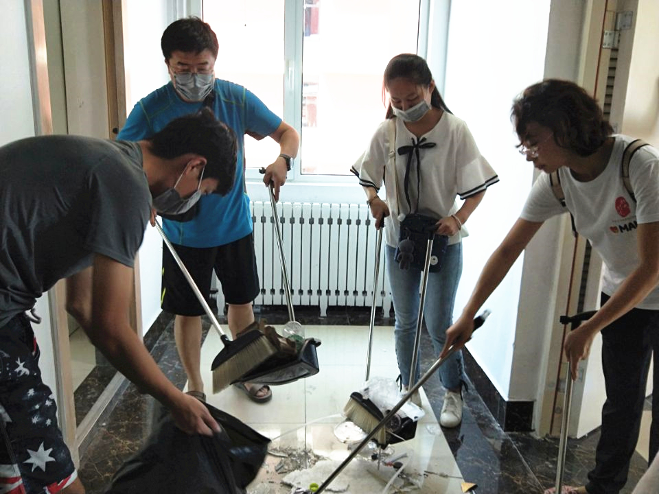 管理工程学院学生工作团队是一支不怕吃苦、能打硬仗、团结奋进的队伍,从8月1日攻坚战开始以来,全员齐上阵,迎酷暑、战高温、抗台风,每天检修质量、打扫卫生、倾倒垃圾、配送工具、反馈问题、统计数据等,早出晚归,汗流浃背,但是大家咬紧牙关不放松,持续发力不换挡,誓死完成总目标。不忘初心,牢记使命,管理工程学院辅导员都是年青的党员干部,他们把牢记初心使命转化为认真落实工作的行动自觉和工作动力,在干事创业中展现共产党员的坚定信念和优良作风。党总支副书记于利俊带头发挥榜样作用,每天冲在第一线,放弃了与孩子外出旅游的安排,把家庭的重任交给同样工作繁忙的妻子,妻子为了支持他的工作,几次推迟出差计划;学工办主任陈永亮老师每天靠在第一线,期间带孩子去北京看病,下了火车没有回家就直奔新校区工作,台风之夜坚守岗位。辅导员邹佳欣怀孕5个月还坚守岗位,冒着酷暑来加班;仝莉莉假期放弃回家探亲的机会,好几天带病坚持工作。辅导员张翔把新婚燕尔的妻子留在家里,住在闷热潮湿的宿舍,再苦再累、无怨无悔。辅导员张心怡带着孩子回老家没住几天匆匆赶回来,把孩子留给父母照顾,天天奔波家庭与学校之间。辅导员王云霞买了高价机票从云南飞回来,连生日都没有与家人一起过……。21日搬迁当天,大家每个人都走了将近30000步,好多老师的脚上都磨起血泡。正因为有了大家的奉献与努力,我们才取得了管理工程学院学生公寓搬迁工作的胜利,换来了干净整洁的学生公寓,看到学生到新校公寓后流露出满意的笑容,大家的辛苦一下子荡然无存,只有满满的幸福感和获得感。