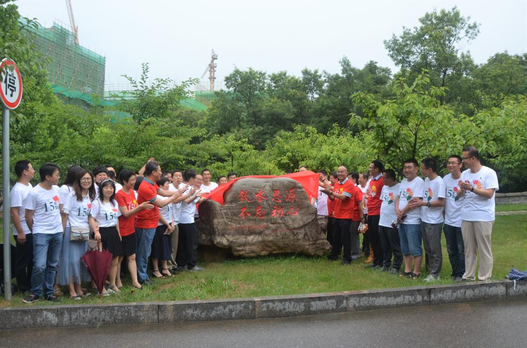 下午,校友们陆续到校,或校园赏景,或回忆当年。三点,纪念石揭幕仪式正式开始,管理工程学院陈为公主持仪式,朦朦细雨并不能消减校友们的热情,大家围绕纪念石而站,共同为纪念石揭开“红盖头”,随着幕布的落下,刻有“饮水思源,不忘初心”的纪念石展现在大家面前,展示着校友们对学校、学院的感恩和怀念。