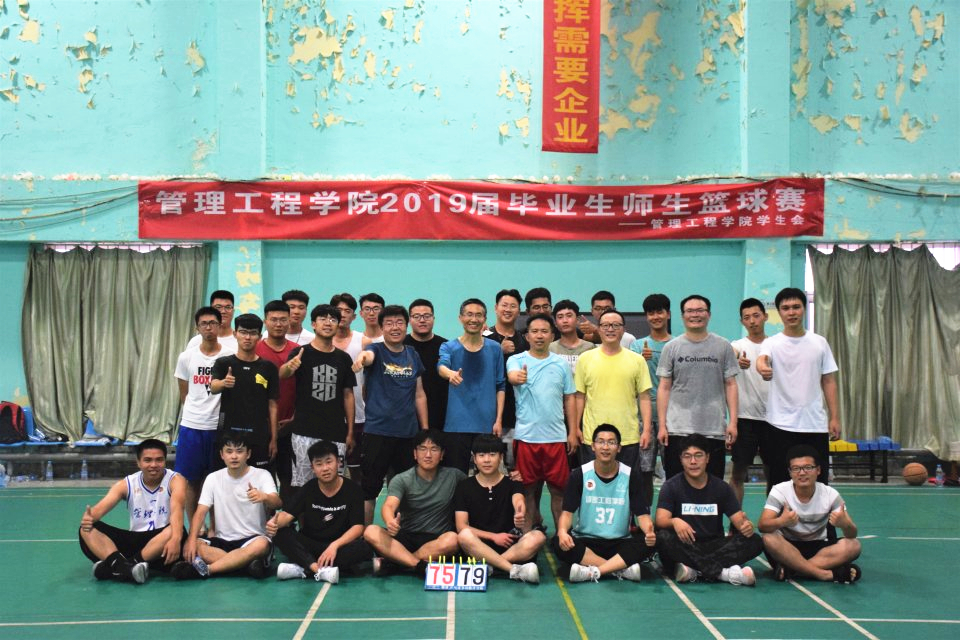 为欢送2019届毕业生,增进师生情感,6月20日下午四点管理工程学院于体育馆举办毕业生师生篮球赛。学生处副处长申维东、学院党总支副书记于利俊、国工教研室主任张立新、物流教研室主任周盛世、工程造价教研室夏宪成、学工办主任陈永亮、辅导员张翔、学院篮球队成员以及2019届毕业生代表参加了此次比赛。