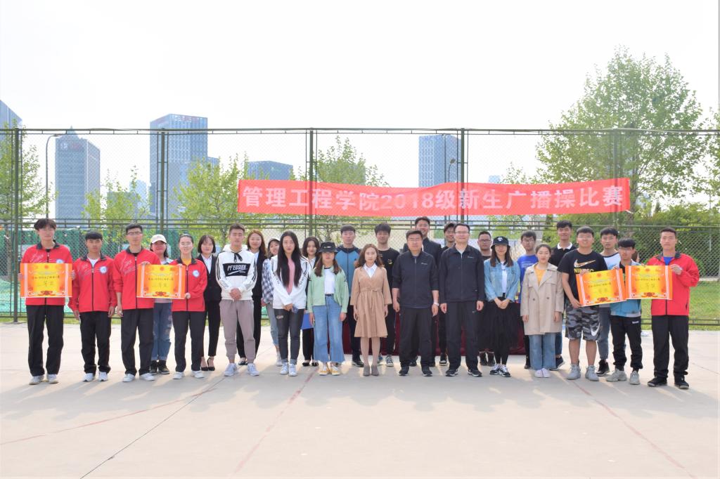 近日,管理工程学院于三教篮球场举行活力广播操比赛。学院党总支副书记于利俊,学院分团委书记、学工办主任陈永亮,辅导员王云霞,学生会副主席成雪蕾、张宁及17级校赛一等奖获奖班级负责人朱琰箐担任评委,学院18级全体学生参加比赛。