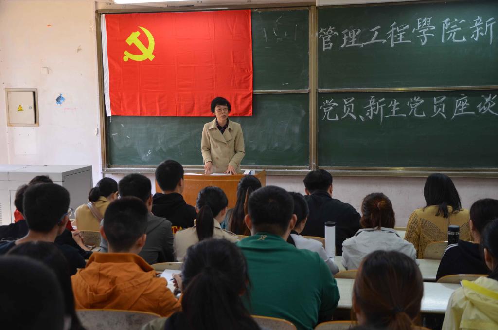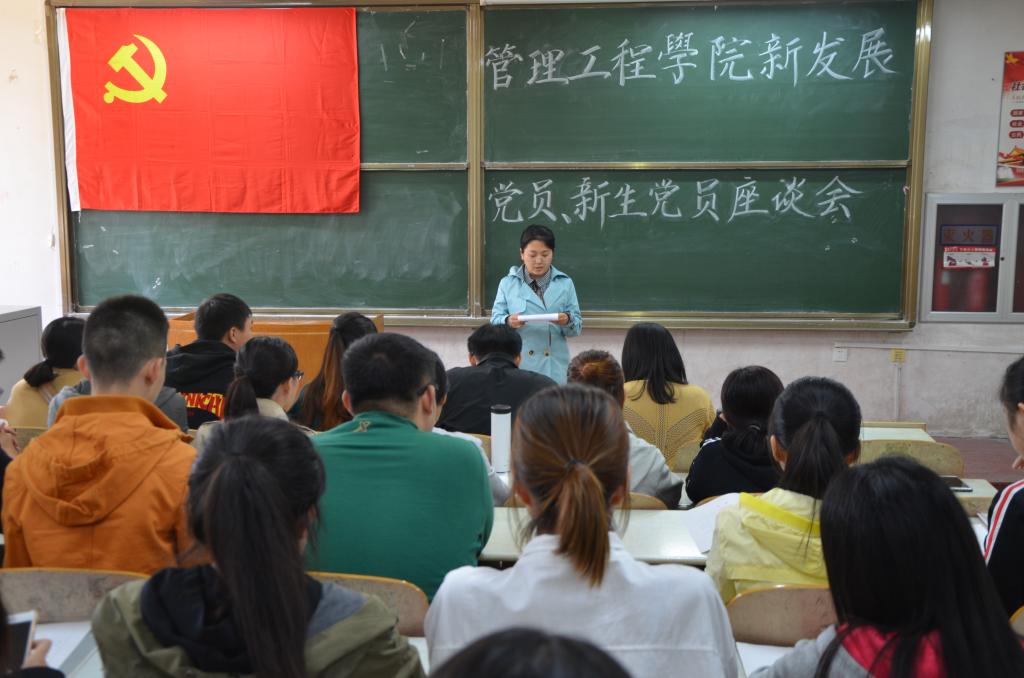 为严格党员发展程序,把好党员发展“入口关”,加强对预备党员的教育和管理,积极发挥模范带头作用,10月18日,管理工程学院在长江路校区二教103教室召开新发展党员、新生党员集体谈话会。学院党总支书记梁虹、党总支副书记于利俊、学生支部书记邹佳欣、陈永亮、马小童、辅导员王云霞、张心怡、张翔以及22名新发展党员、9名新生党员参加了此次座谈会。会议由于利俊主持。