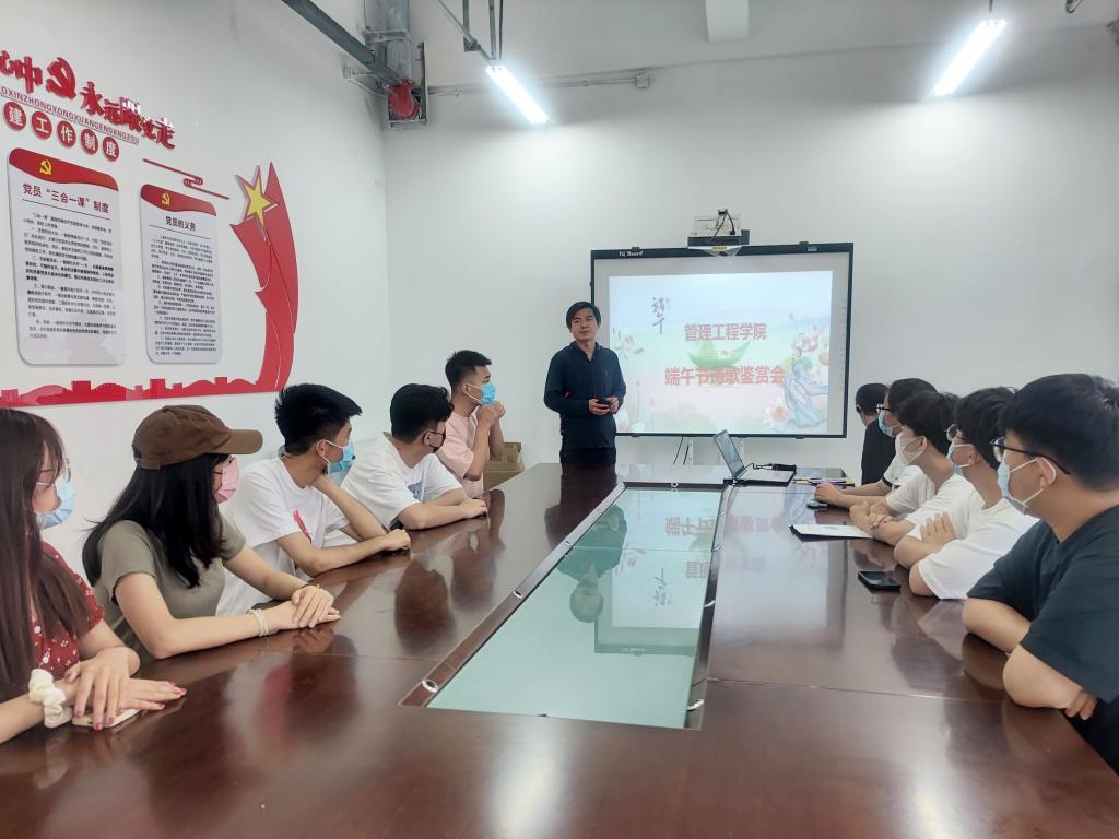 为了进一步挖掘传统节日中蕴涵的文化教育资源,引导青年学子厚植家国情怀,6月1日下午,管理工程学院在嘉陵江路校区C1-2楼311教室开展“我们的节日·端午诗歌鉴赏会”,学院团委书记宋晓峰、朗诵队及各年级团员代表等30余人参加。