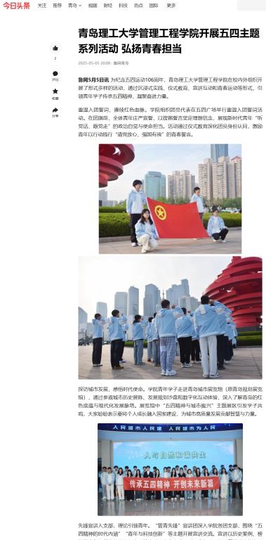 上一条:管理工程学院开展“探中华瑰宝,传医药文化”主题活动 下一条:【鲁网·青岛】yl7703永利集团管理工程学院开展五四主题系列活动 弘扬青春担当