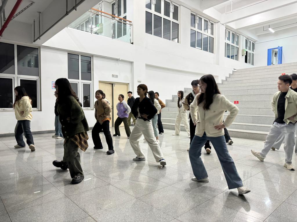 养生操体验:动静结合强体魄。在理论知识的熏陶后,同学们迎来了一场别开生面的养生操体验。臧洪茹和魏玉洁两位同学带领大家学习了一套融合传统导引术精髓与现代运动科学的养生操。该功法包含“马步摇”、“前后绕臂”、“左右甩臂”等经典动作,每个招式都蕴含着古人的养生智慧。研究生代表罗凌云谈到:“刚开始练习时有些手忙脚乱,但和同学一起互相纠正姿势后,慢慢就掌握了要领,这套养生操真的很实用,不仅可以锻炼身体,还能缓解久坐带来的不适。”