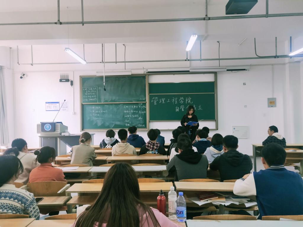 3月24日下午,管理工程学院在2号教学楼501教室举行公寓自管会成立及年级标兵宿舍表彰大会。辅导员韩群,自管会全体成员,受表彰的宿舍舍长代表出席会议,会议由韩群主持。
