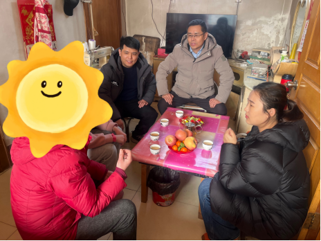 走访过程中,辅导员吴思瑶、韩群始终陪伴学生左右,细心询问其思想状况与日常生活,叮嘱学生保持与家人、老师的密切沟通,遇到困难及时向学院反映。老师们还送上了精心准备的慰问物资,虽物轻小,却承载着学院厚重的关怀,让这个寒冬弥漫着暖意。
