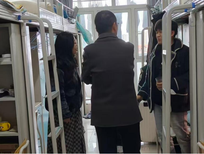 党委副书记、副院长柳志广一行深入学生宿舍亲切看望返校学生,详细询问同学们的假期生活、返校适应情况以及新学期的学业规划。叮嘱同学们尽快调整作息,从“假期模式”切换到“开学模式”,同时注意宿舍安全,共同营造温馨和谐的宿舍氛围。