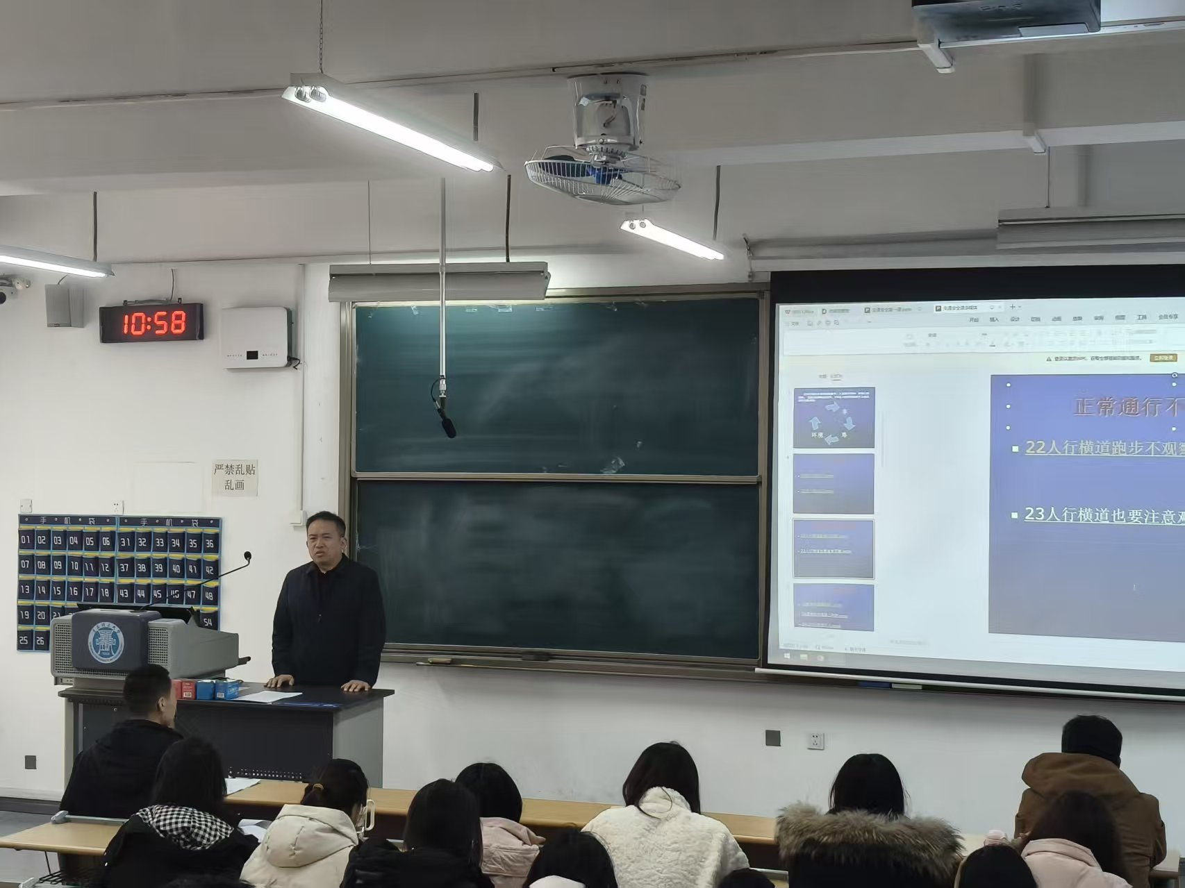 为切实筑牢校园交通安全防线,增强学生交通安全意识与自我防护能力,3月13日,由安全管理处与管理工程学院联合主办的“交通安全进校园 平安护航新学期”专题宣讲活动在黄岛校区举行。活动邀请了开发区交警三中队左言士警官走进校园,为百余名师生带来了一堂专业详实、案例生动的“交通安全第一课”。安全管理处副处长申维东、管理工程学院党委副书记柳志广、安全管理处技防科姜圣天及辅导员参加活动。