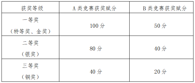 注:中国“互联网+”大学生创新创业大赛、“挑战杯”全国大学生课外学术科技作品竞赛、“挑战杯”全国大学生创业计划竞赛(创青春全国大学生创业计划竞赛)三大赛事确定为科研竞赛A类赛事,除三大赛事之外的中国高教学会公布赛事为B类赛事(包括ACM-ICPC国际大学生程序设计竞赛全国总决赛)。科研竞赛的纳入范围及分类,依据学生参赛当年中国高教学会公布的赛事为准。