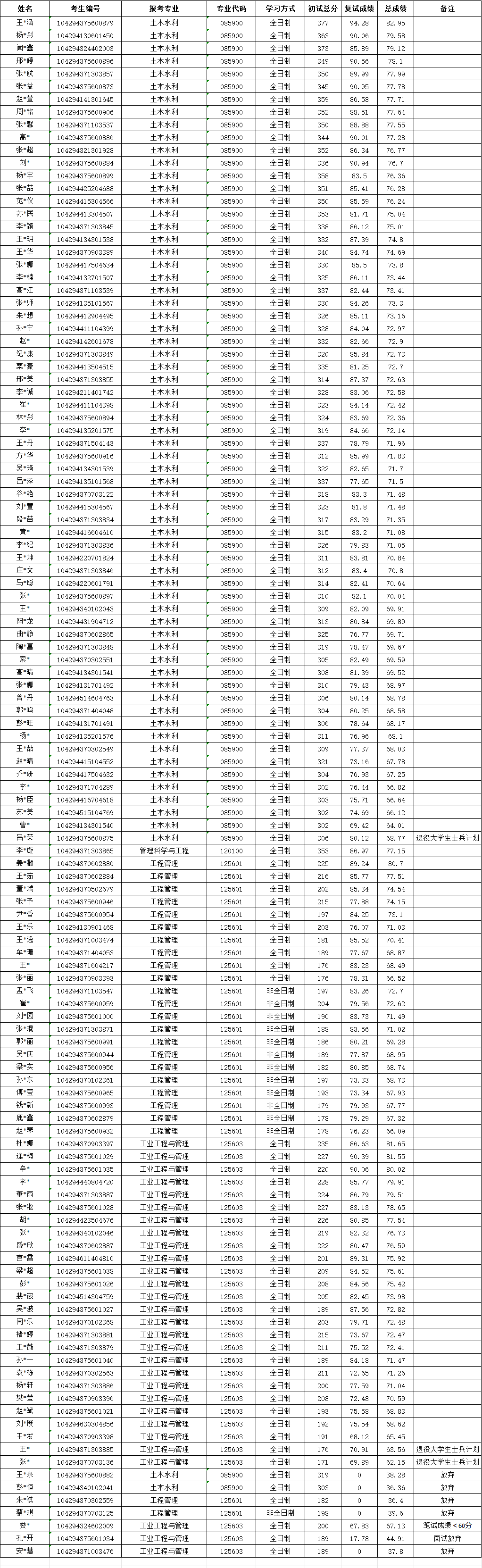 管理工程学院2024年硕士研究生一志愿复试考生成绩表
