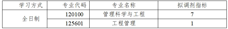 第一志愿报考专业为管理科学与工程(1201)、技术经济及管理(120204)、土地资源管理(120405)、情报学(120502)的考生,可申请调剂到管理科学与工程专业。