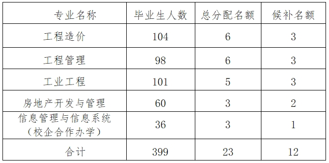 学院推免生计划为23名,候补12名。根据目前学院各专业毕业生人数、国家及省一流专业建设点情况、学科发展情况,经学院工作小组集体研究,确定各专业推免生名额分配情况如表1所示。若某专业出现空额,最终名额调配由学院推免生遴选工作小组决定。