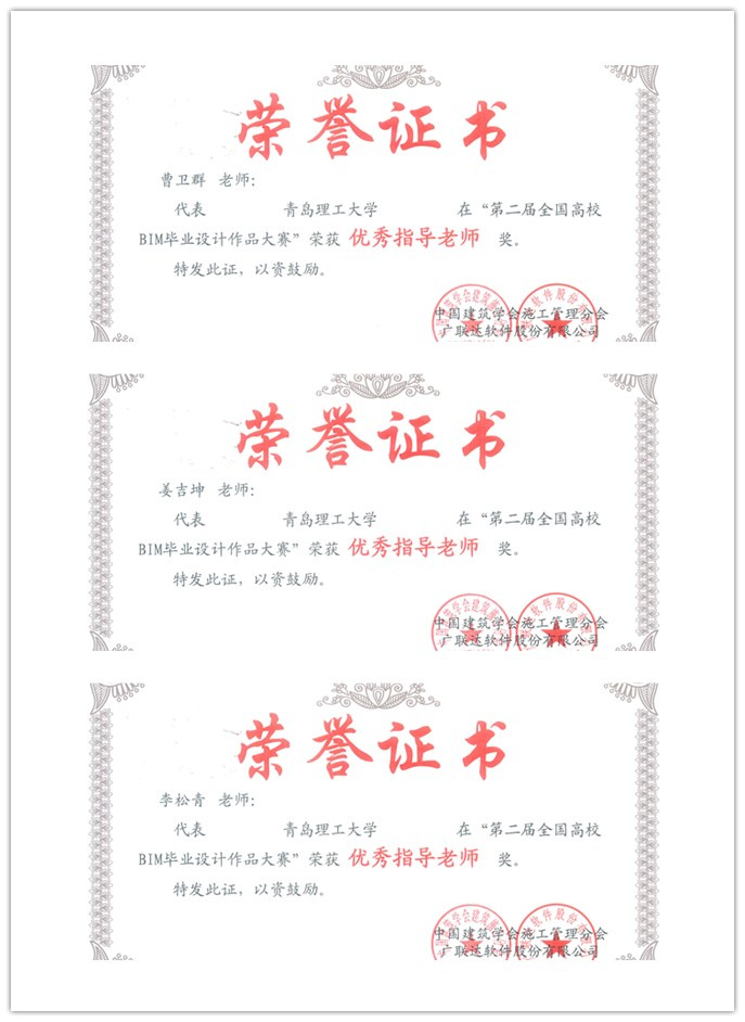 近日,第二届全国高校BIM毕业设计大赛现场答辩与颁奖典礼在北京举行。管理学院由工程管理、国际工程项目管理、工程造价专业组建的三支参赛队伍分获国家特等奖、国家二等奖、国家三等奖,指导教师王志强和胡龙伟被评为金牌指导教师。