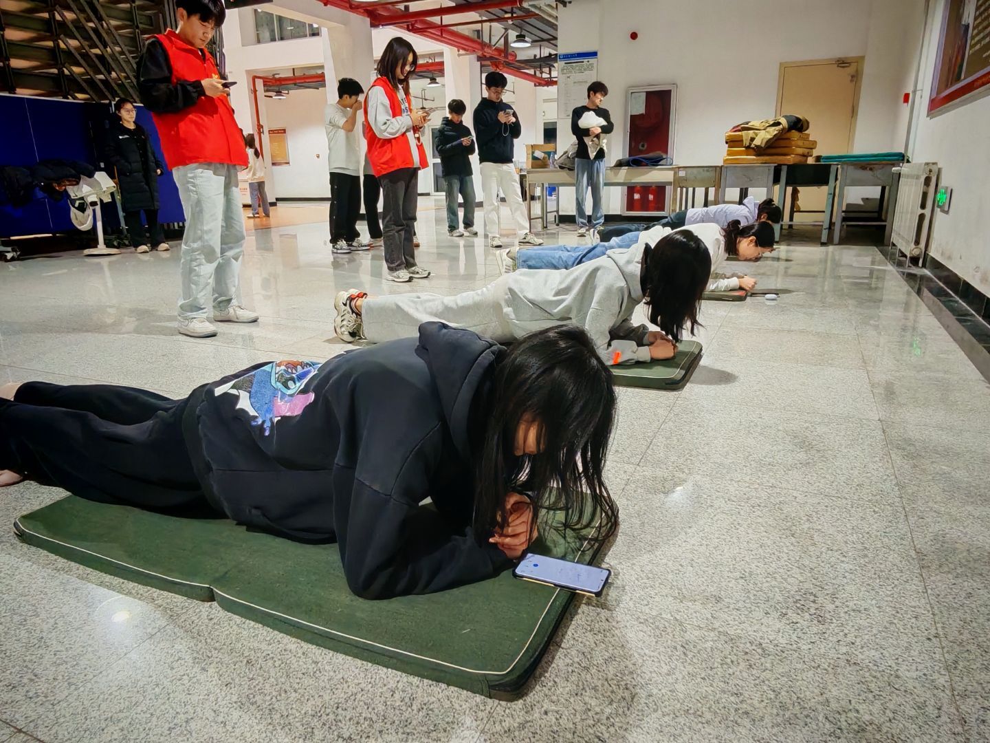 大赛分男女组别,设有平板支撑、1分钟仰卧起坐、1分钟俯卧撑三个项目,吸引了来自学院各年级的百余名选手参赛。经过激烈角逐,多个宿舍脱颖而出,斩获佳绩。信管241班宋卓等6名同学获得一等奖;工程242班谢舒琪等6名同学获得二等奖;房产231班王馨乐等12名同学获得三等奖。赛后,信管241班宋卓同学表示:"这次比赛不仅让我们锻炼了身体,还增进了宿舍成员之间的感情,今后会继续保持健身习惯,以更饱满的精神状态投入到学习与生活中。"