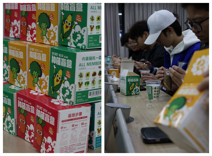 活动现场,同学们通过抽取“生态盲盒”开启植树初体验。盲盒内随机放置银杏、香樟、多肉等不同品种的树苗或种子,参与者需根据植物特征卡猜测品种,并完成种植任务。“就像拆盲盒一样充满惊喜!我抽到的是桂花苗,虽然一开始不确定怎么养护,但通过团队协作和志愿者指导,我们成功种下了‘专属树’。”信管242班魏志宇同学兴奋地分享道。为增强趣味性,活动还融入“盲盒知识卡”设计,扫码即可观看树木生长动画、生态价值讲解视频。“盲盒不仅是游戏,更是生动的自然课堂。我们希望通过这种形式,让青年学子主动探索生物多样性保护的意义。”学院团委书记宋晓峰介绍。