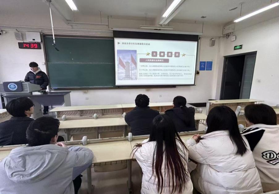为缅怀南京大屠杀遇难同胞,铭记历史、砥砺前行,管理工程学院本科生第三党支部于2024年12月4日开展了“铭史祭英魂,弘志践初心”国家公祭日红色朗诵主题党日活动。活动开始,全体党员身姿挺拔,肃然而立,为南京大屠杀遇难同胞静静默哀三分钟。待默哀终了,朗诵之声缓缓响起。党员同志们以深沉且铿锵的语调朗诵《人民英雄纪念碑碑文》,字句间仿若铺展开一幅自鸦片战争起始,无数英豪为民族独立与百姓解放无畏拼搏、壮烈牺牲的宏伟长卷,对英雄先辈的敬仰追思之情如洪波涌起。随即,党员同志们相继吟诵多首抗日主题诗作,像《抗日抒怀》等经典篇章。他们凭激昂嘹亮之嗓音,把诗中的对日寇暴行的愤懑、对华夏大地的拳拳深情以及对凯旋之日的热切期盼抒发得酣畅淋漓。党员们的眼神中透露出对英雄先烈的崇敬与追思,他们用声音向先烈们致以最崇高的敬意。