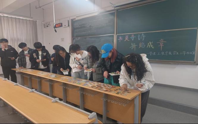 为厚植学生文化自信,发挥资助育人实效,助力家庭经济困难学生舒缓压力,4月23日下午,管理工程学院于C1-2-402教室举行“书页寻诗,拼贴成章”活动。学院受资助对象参与活动。