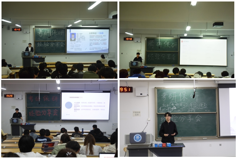 8位主讲人的分享各有特色,围绕专业问题和实战经验展开讲解。在保研经验分享中,四位推免学子围绕目标规划、能力锻造、精准发力的提升逻辑,以夏令营备战、预推免冲刺、九推决胜为关键时间节点,从申请条件、材料准备、学习方法等方面展开细致分享。他们建议2024级学生在大一阶段夯实专业基础,把握课程成绩核心竞争力,在大二阶段锚定科研、竞赛等差异化发展赛道,在大三阶段主动尝试,全面了解推免信息,打破信息壁垒。在考研经验分享中,四位考研学子凝练出“分阶突破、靶向提升”的备考方略。他们建议将复习周期划分为基础强化、专题攻坚和模拟冲刺三阶段,强调深度把握命题规律。针对备考常见的焦虑情绪,他们提出“目标拆解、弹性执行、正向反馈”的心理调适机制,倡导量化学习进度,并通过运动、组队督学等方式维持备考节奏。“学长学姐们的经验不仅让我们提前了解了备考信息,更让我看见了专业发展的无限可能。”2024级工程管理专业李同学分享道。