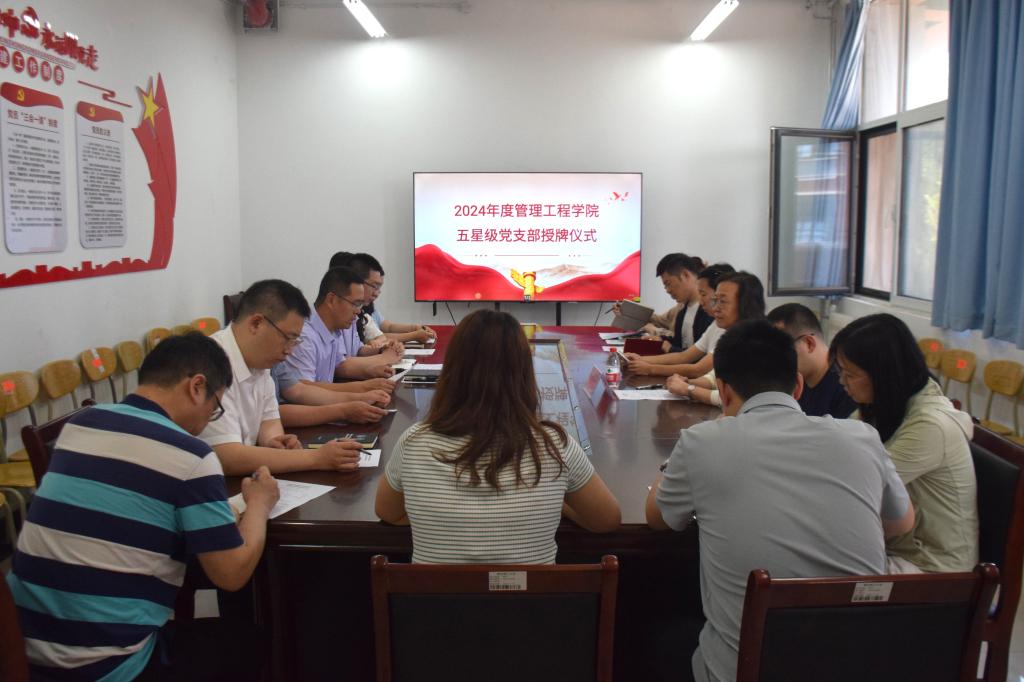 7 月 1 日 ,管理工程学院隆重举行五星级党支部授牌仪式,校党委常委、副校长陈韶娟出席并为五星级党支部授牌。学院领导班子成员、党支部书记及党员代表参加。学院党委书记孟凡勇主持仪式。