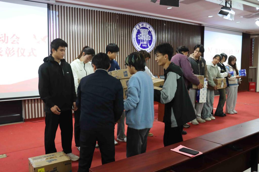 宋晓峰宣读了表彰决定,对在本届运动会中取得优异成绩的个人进行了表彰,并向获奖代表颁发奖品。随后,各项目获奖运动员代表依次上台领奖,现场气氛热烈。