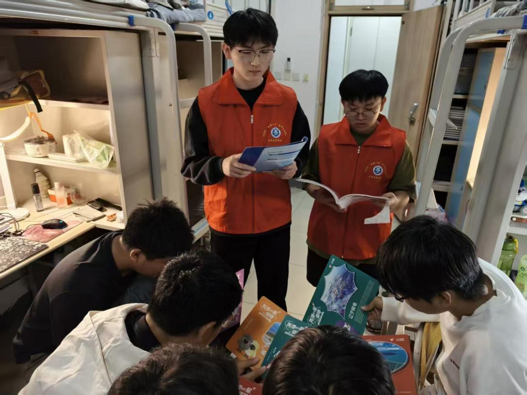 宣讲两弹峥嵘史,弘扬一星奋斗魂。10月26日,青衿星轨宣讲团于黄岛校区北区1号、3号学生公寓组织了一场以“两弹一星”精神普及宣传教育为主题的问答实践活动。本次活动旨在利用宿舍区的便利环境,深化同学们对“两弹一星”历史成就及其精神内涵的理解。同学们就自己所关心的历史细节、人物事迹等问题进行提问,宣讲团成员依据“两弹一星”历史发展与研究共识,进行了严谨、客观的解答与交流。2024级雷同学表示:“作为一名工科生,我深感肩上责任重大。在实验室中,我们每一次实验的成功与失败,都让我体会到科研工作者的艰辛与坚持。我们必须传承那种勇于探索的精神,为祖国的科技进步贡献自己的力量。”