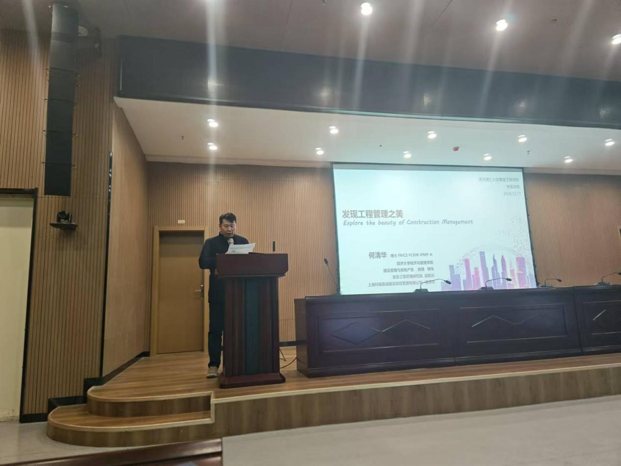 12月17日,yl7703永利集团管理工程学院北斗论坛(高水平学科建设)在我校黄岛校区图书馆1楼报告厅举办。同济大学何清华教授应邀作了题为“发现工程管理之美”的专题讲座。管理工程学院副院长(主持工作)赵辉教授主持会议,学院相关领导、老师、以及工程管理本科、工程造价本科、土木水利等专业硕士研究生200余人参加讲座。