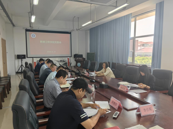 6月10日下午,管理工程学院召开2025年第十一次党委会,学校党委常委、副校长陈韶娟列席指导并讲话。组织部有关同志列席会议,学院党委委员参加会议。学院党委书记孟凡勇主持会议。