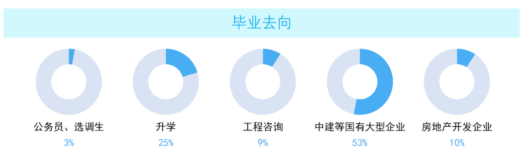 我国正处在全面推进新型建筑工业化、新型城镇化、建筑绿色化及低碳化发展的时期,建设工程范围广、规模大、涉及领域多,各领域建设工程出现了规模大型化、技术复杂化和系统化、分工专业化、管理信息化的总体趋势,需要更多更专业的工程管理人才;同时“一带一路”战略为我国建筑企业开拓国际市场带来了巨大机遇。随着建设工程领域“放管服”改革的深入,建设工程领域的上述发展趋势对于能够从事全过程工程管理的应用研究型人才越发迫切,工程管理专业毕业生有广阔的国内和国际就业前景。